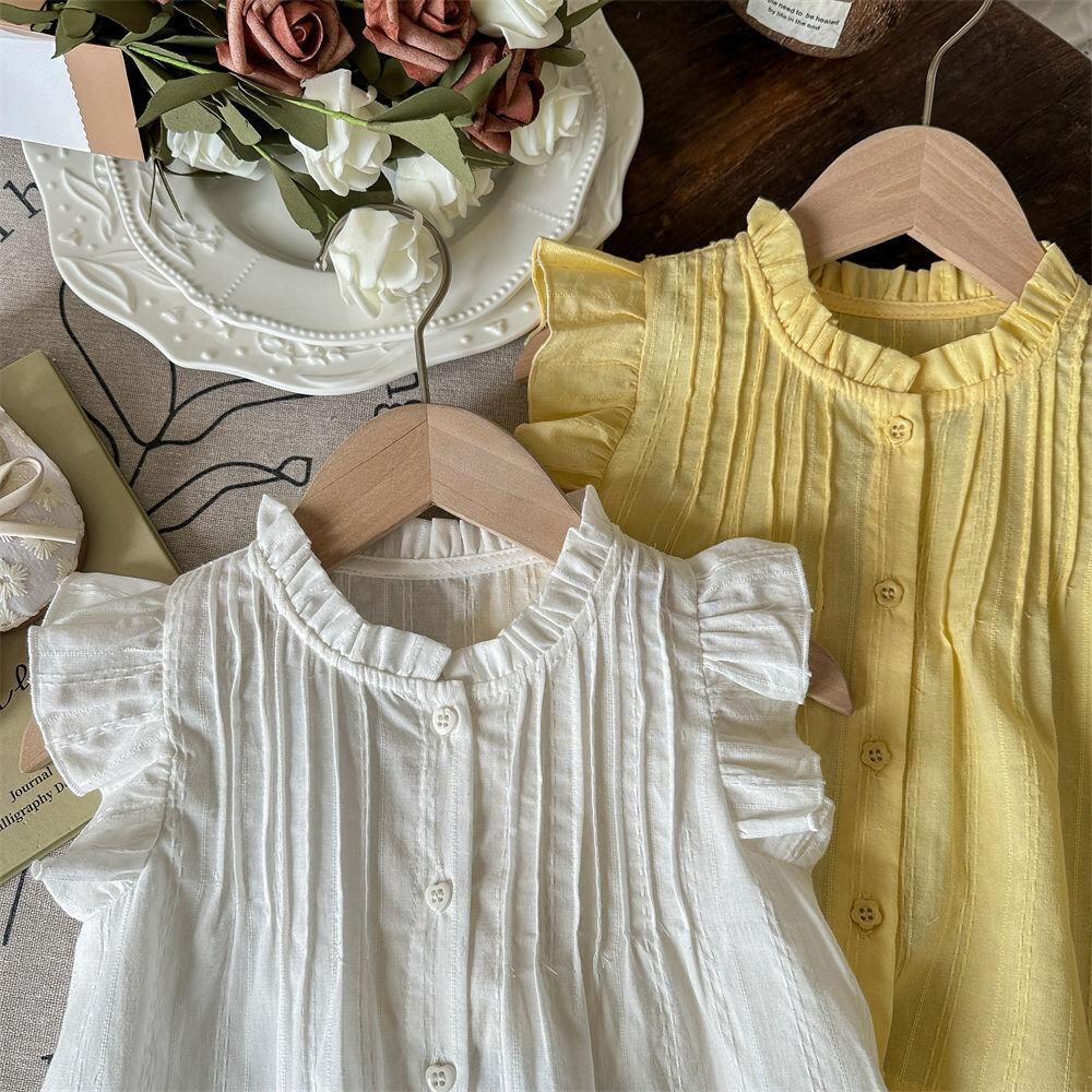 子供服 シャツ 女の子 夏 ノースリーブ トップス ブラウス Vネック 無地 コットン100% かわいい 韓国風 リゾート 普段着 イエロー アイボリー