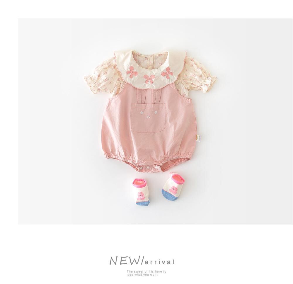 ベビー服 女の子 花柄 刺繍 襟付き 半袖 シャツ ブラウス 綿100% かわいい 柔らかい 赤ちゃん 幼児 トップス 73cm 80cm 90cm 100cm 春夏