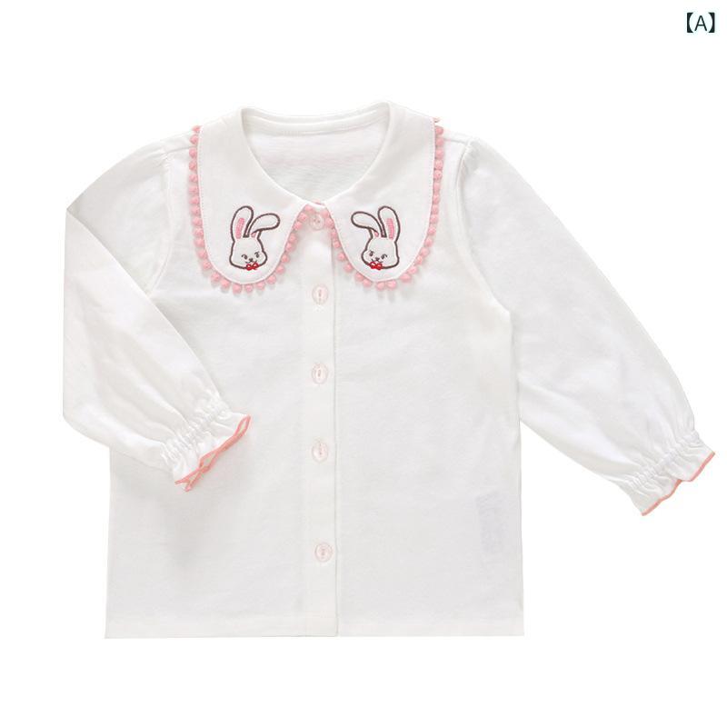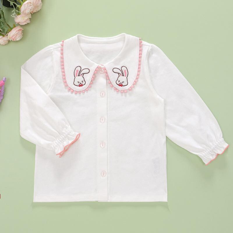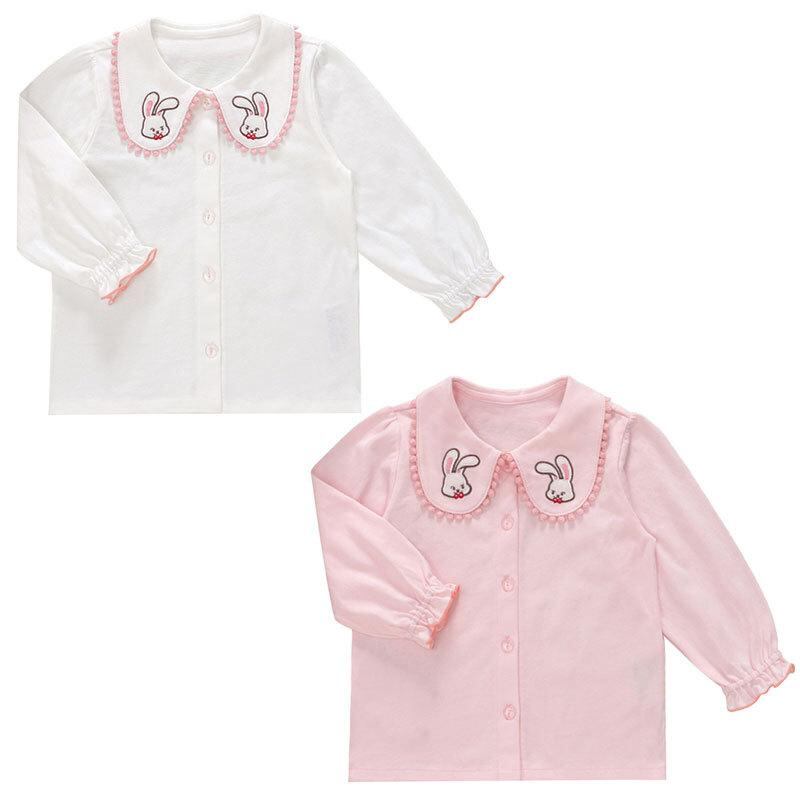 シャツ キッズ かわいい ウサギ 刺繍 襟付き 長袖 トップス インナー 子供服 通園 通学 綿95%