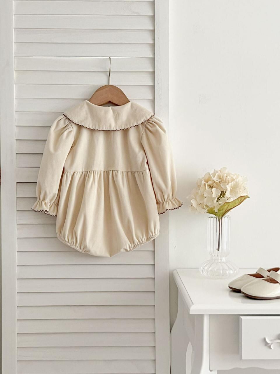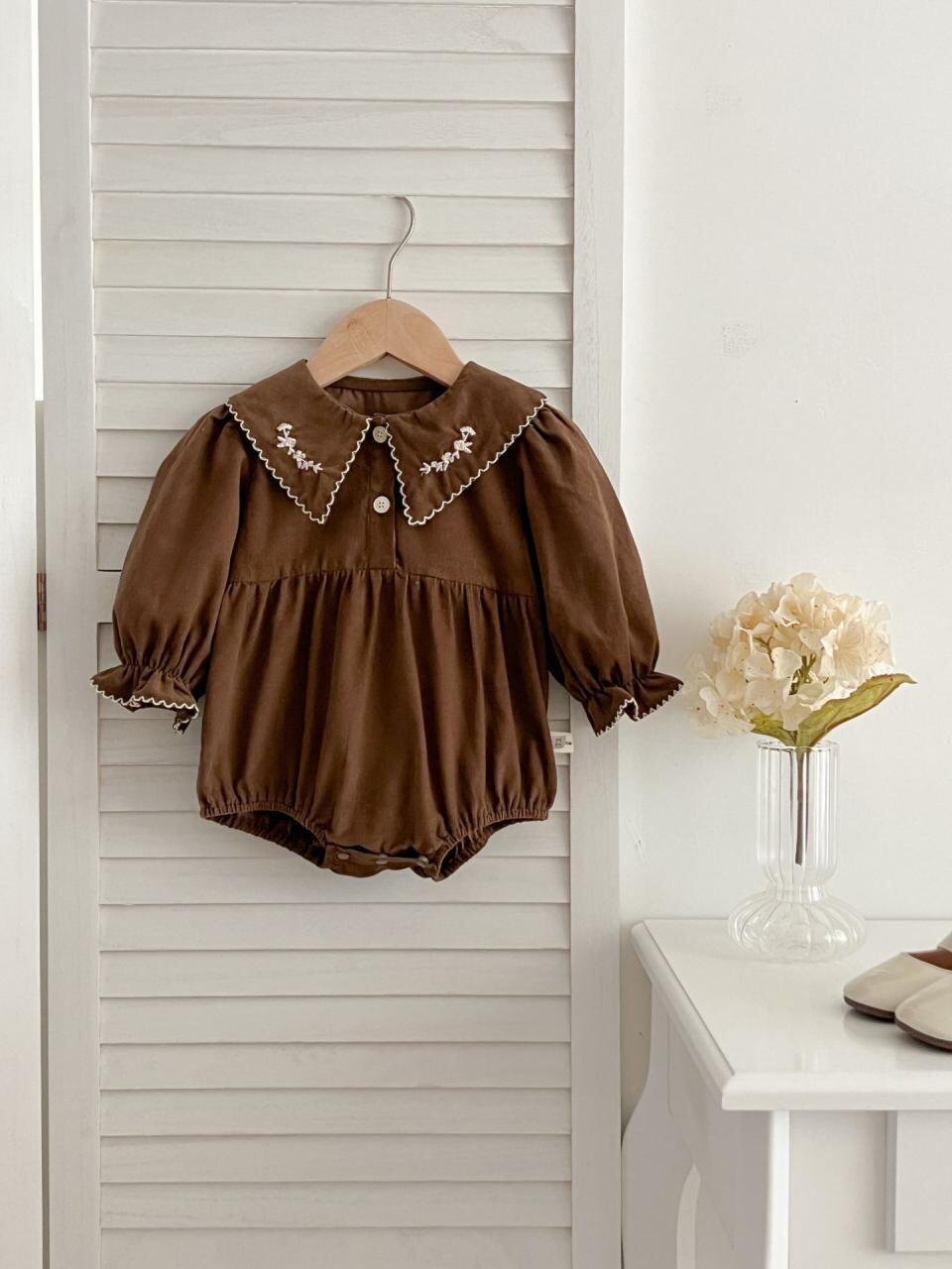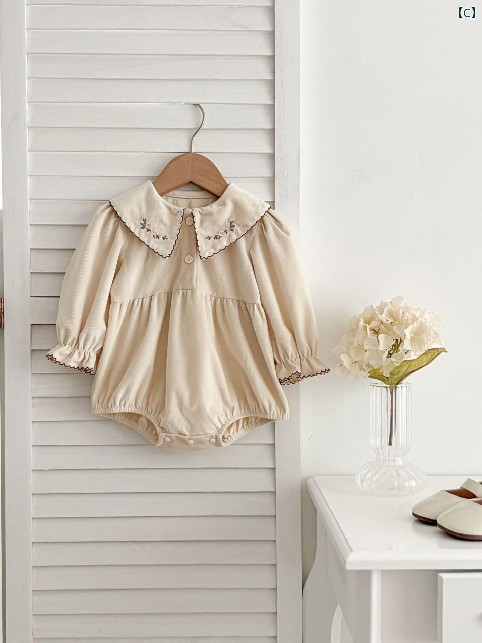 ベビー服 女の子 刺繍入りブラウス&ロンパース 上下セット 長袖 コットン100% 襟付き 花柄 春秋 66cm 73cm 80cm 90cm 100cm かわいい 普段使い お出かけ