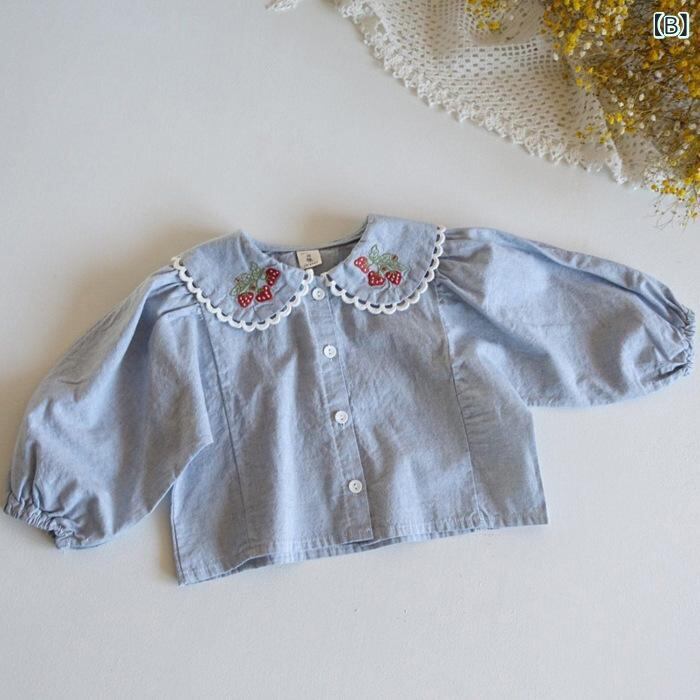 ベビー・キッズ シャツ 女児 ベビー 春秋 長袖 コットン 襟付き 花柄 レース カーディガン 赤ちゃん 幼児 やわらかい 普段使い