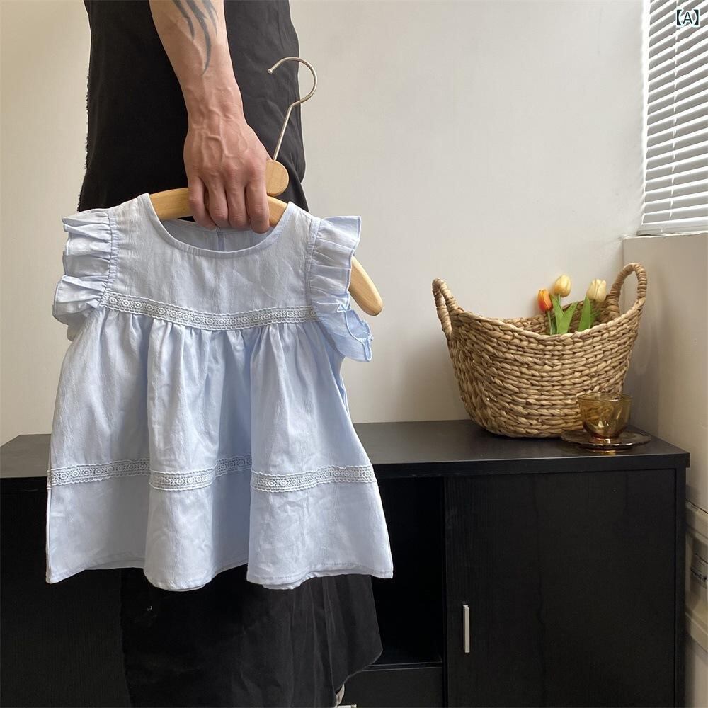 シャツ 女の子 子供服 ノースリーブ ブラウス ドールシャツ チュニック カットソー コットン レース 春夏 ガーリー ナチュラル かわいい おしゃれ