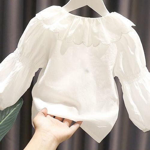 シャツ ベビー服 女の子 小さな襟 長袖 コットン 秋 ホワイト 80cm 90cm 100cm 110cm 120cm