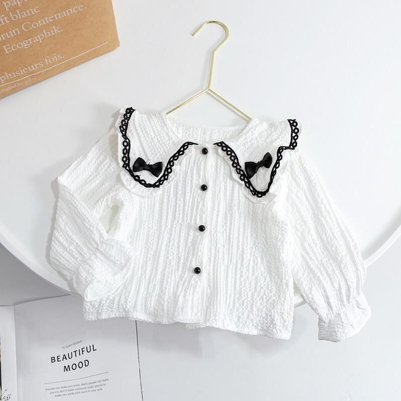 シャツ ガールズ 子供服 トップス ブラウス 長袖 白シャツ 丸襟 幼児 小学生 80 90 100 110 120 130 春秋 かわいい 綿100%