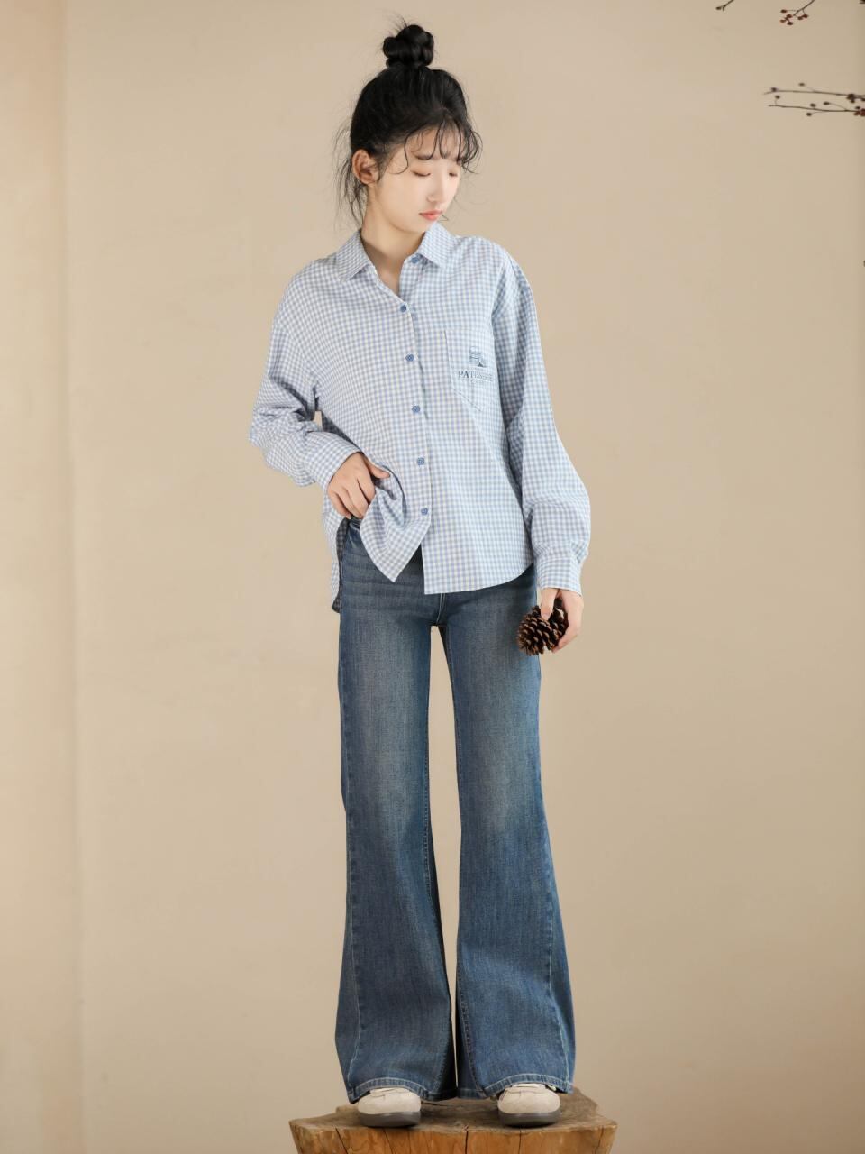 ・カラー: 格子縞シャツ