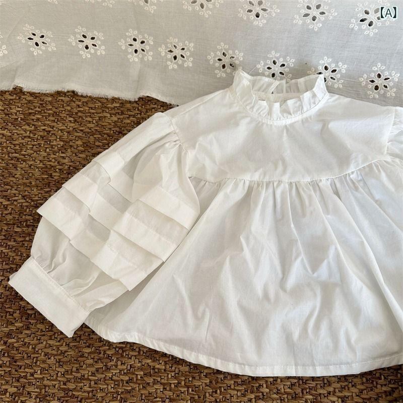 シャツ 女の子 子供服 コットン ブラウス 長袖 無地 立襟 トップス 春物 白 80 90 100 110 120 130