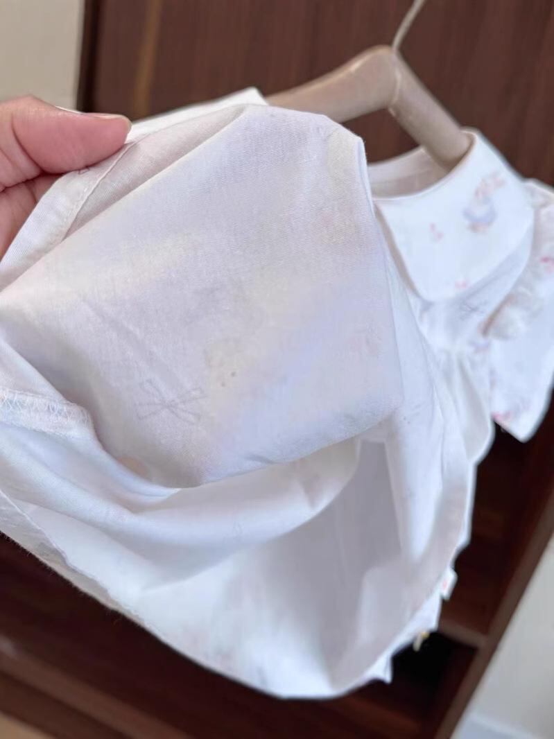 シャツ 女児 ベビー 薄手 半袖 花柄 かわいい 襟付き トップス 綿 ミルクホワイト 73cm 80cm 90cm 100cm 110cm 120cm 130cm