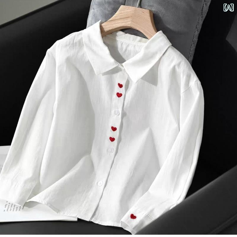 子供服 シャツ ガールズ 綿 長袖 トップス かわいい 刺繍 春秋 通学着 普段着 白