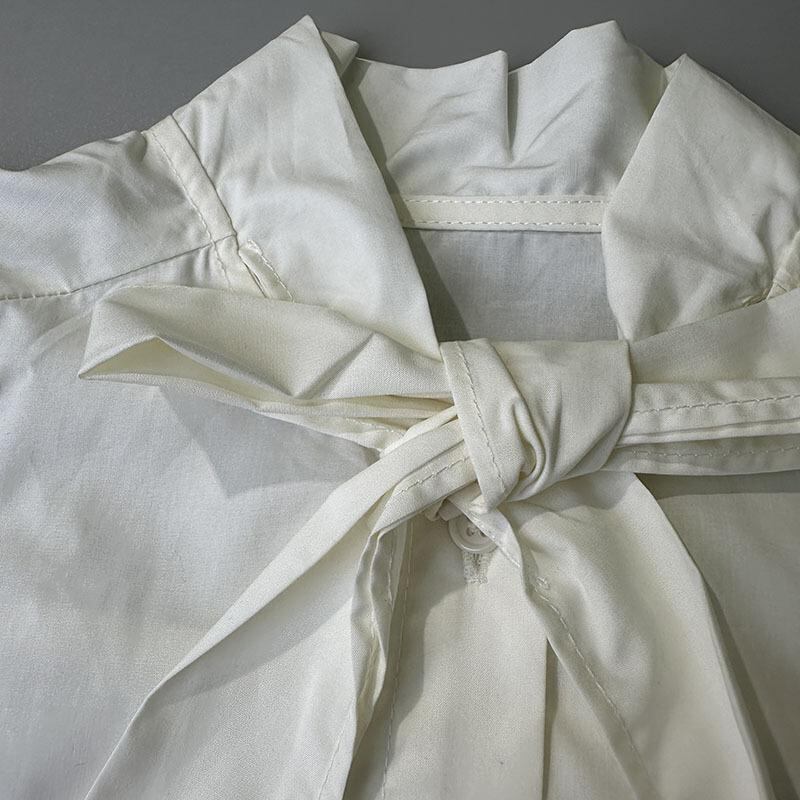 シャツ ガールズ 長袖 春秋 子供服 韓国風 ゆったり かわいい デザイン 立襟 コットン トップス オフホワイト