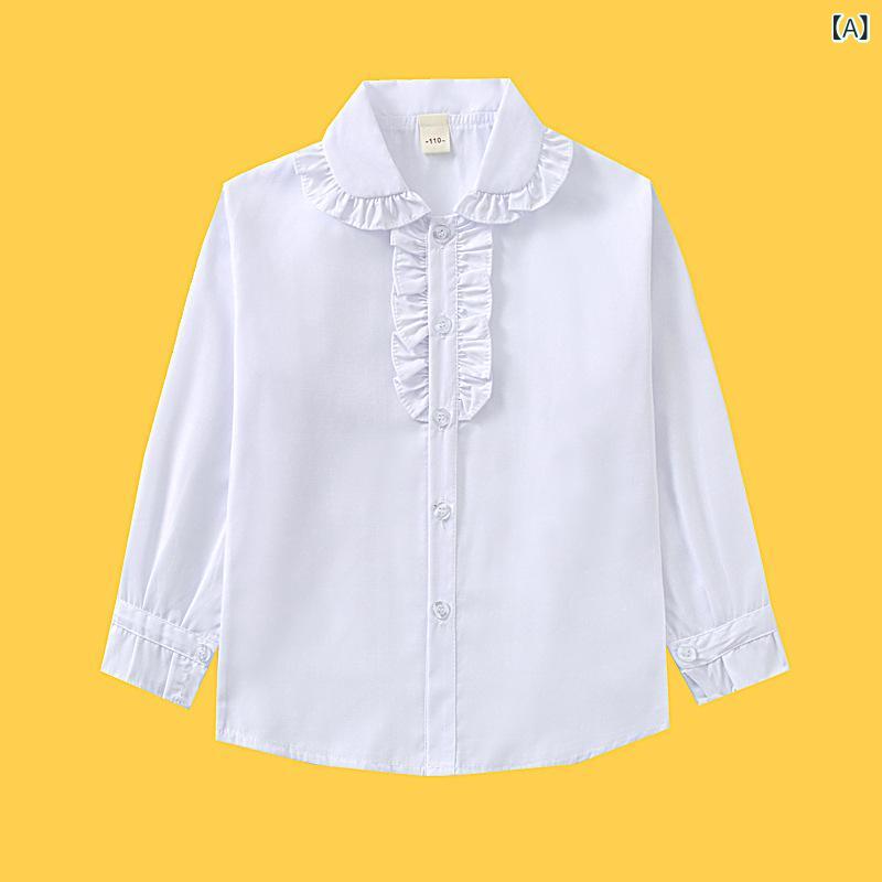 シャツ 女の子 キッズ 白シャツ ブラウス スクール 制服 長袖 発表会 演奏会 皱防止 縮防止 綿