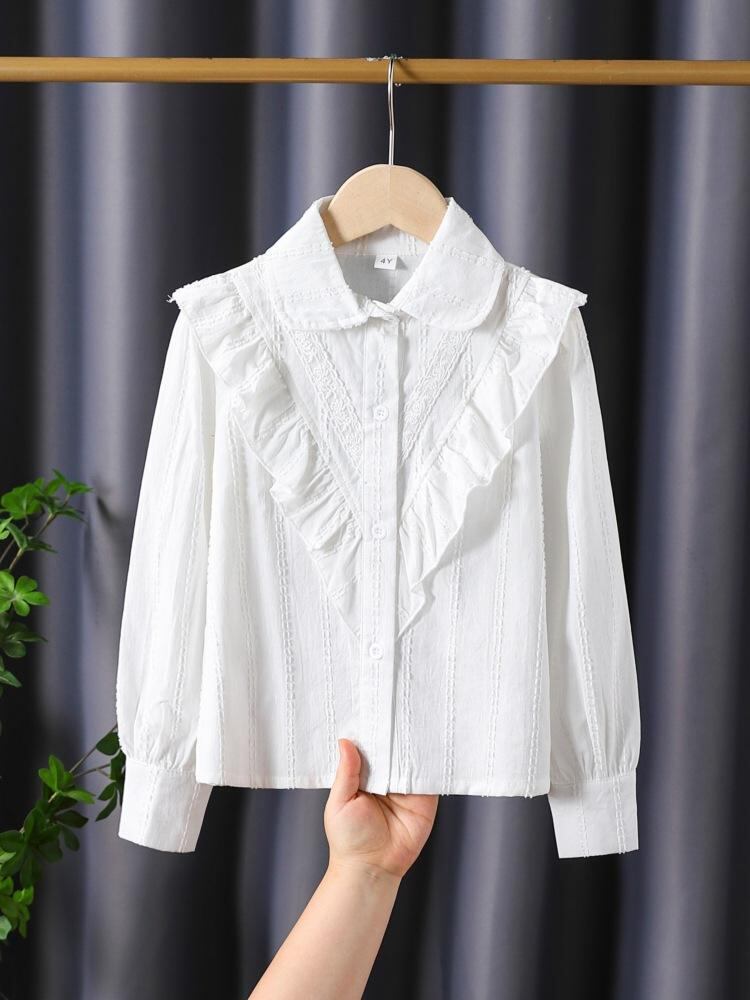 シャツ 女の子 キッズ 長袖ブラウス 春秋 子供服 白シャツ スクール風 カーディガン トップス 綿100% 110cm 120cm 130cm 140cm 150cm 160cm