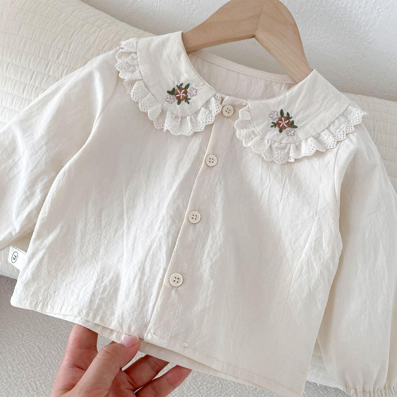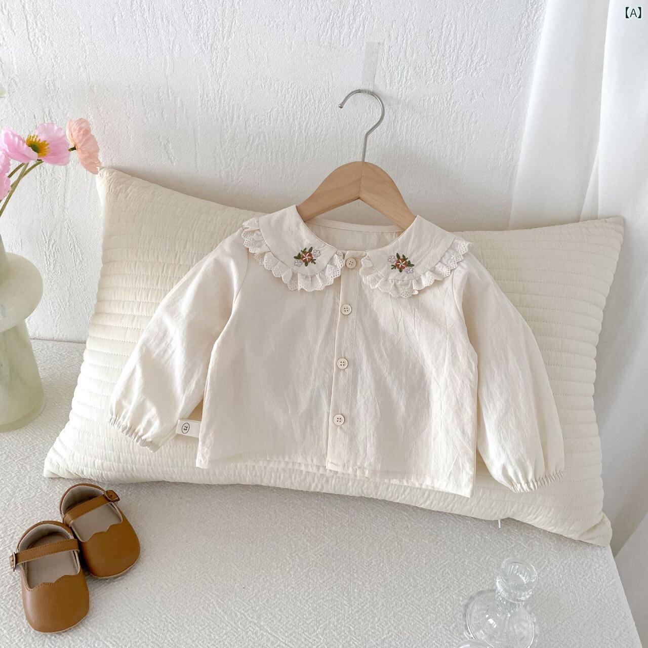 シャツ キッズ 女の子 刺繍 コットン 韓国子供服 ファッション シャツ ロンパース セット 春秋 かわいい おしゃれ 普段使い