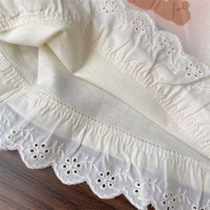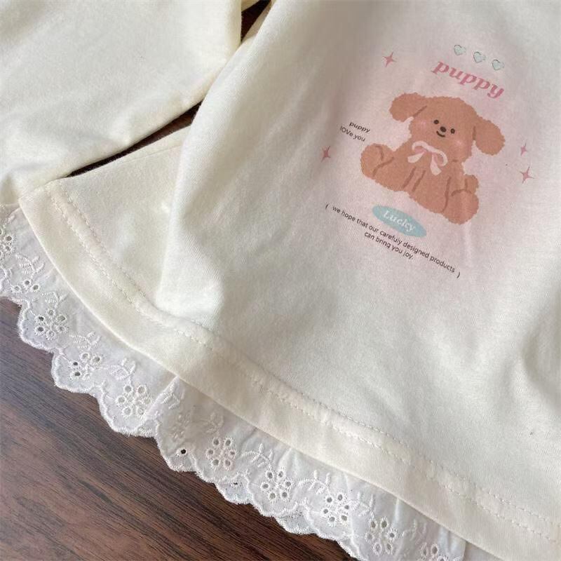 Tシャツ キッズ 女の子 長袖 春秋 レース 花柄 小犬 プリント カットソー 子供服 通園 普段着