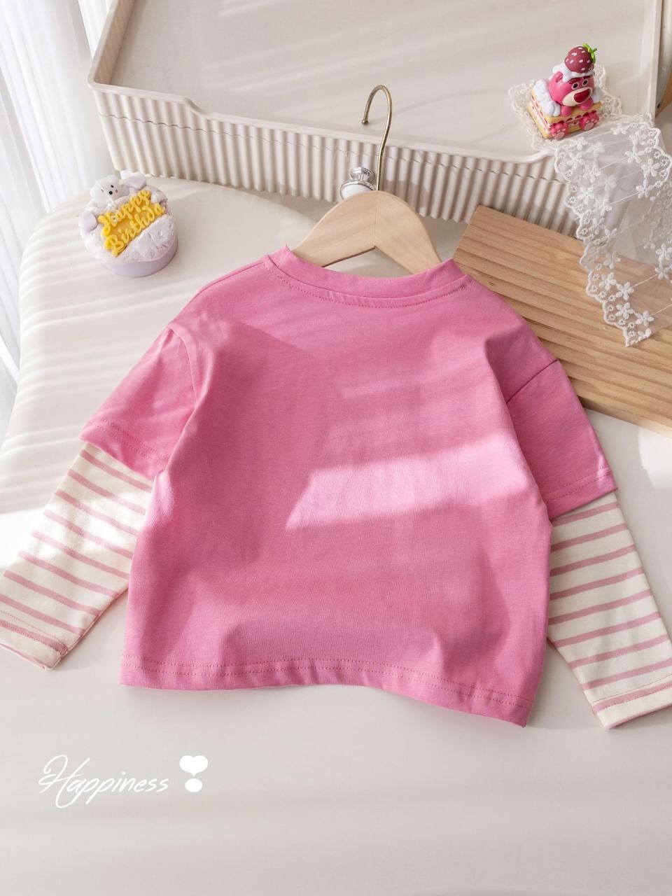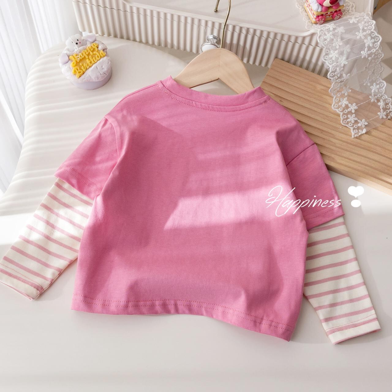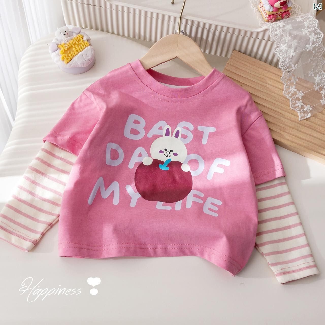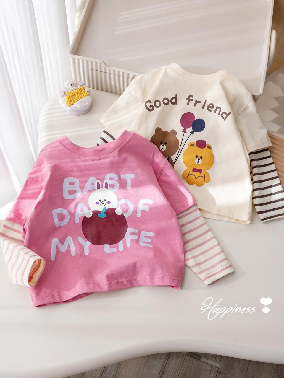 子供服 Tシャツ 女の子 春秋 長袖 カットソー かわいい 韓国風 子供 春服 カジュアル 保温 ピンク系 杏色