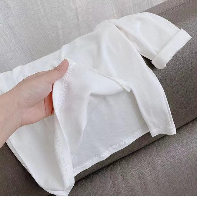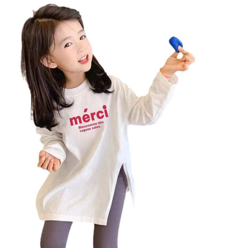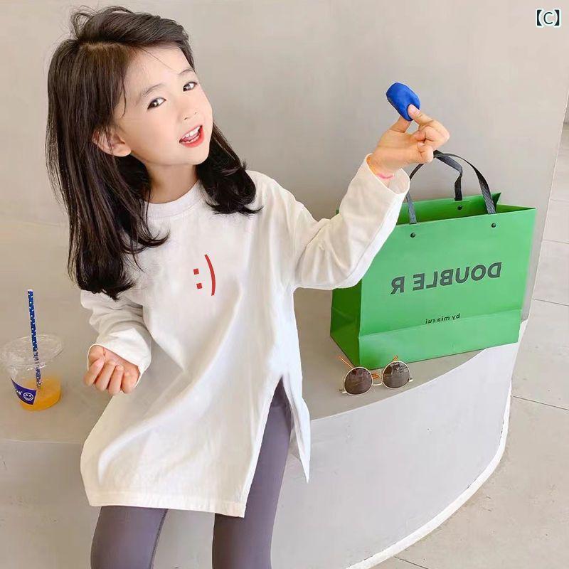 Tシャツ 女の子 子供服 春秋 韓国風 長袖 トップス カットソー 中大童 個性的 不規則 吸湿速乾 白 ホワイト コットン