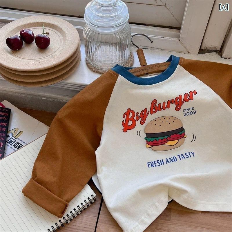 Tシャツ キッズ 子供用 長袖 春物 コットン カートゥーン プリント 配色 切り替え カジュアル 男の子