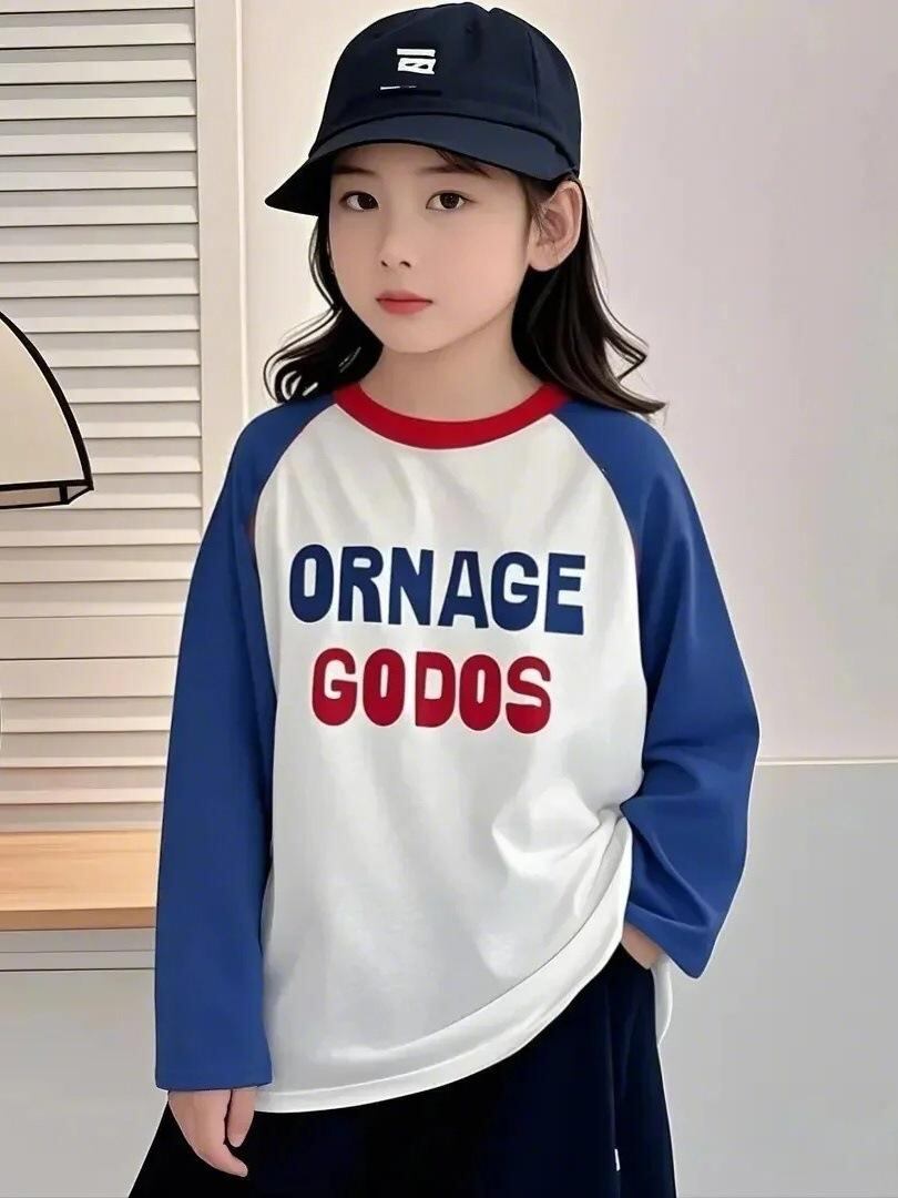 子供用 Tシャツ 長袖 春秋 男女兼用 ピュアコットン 切り替え カジュアル トップス 吸湿性