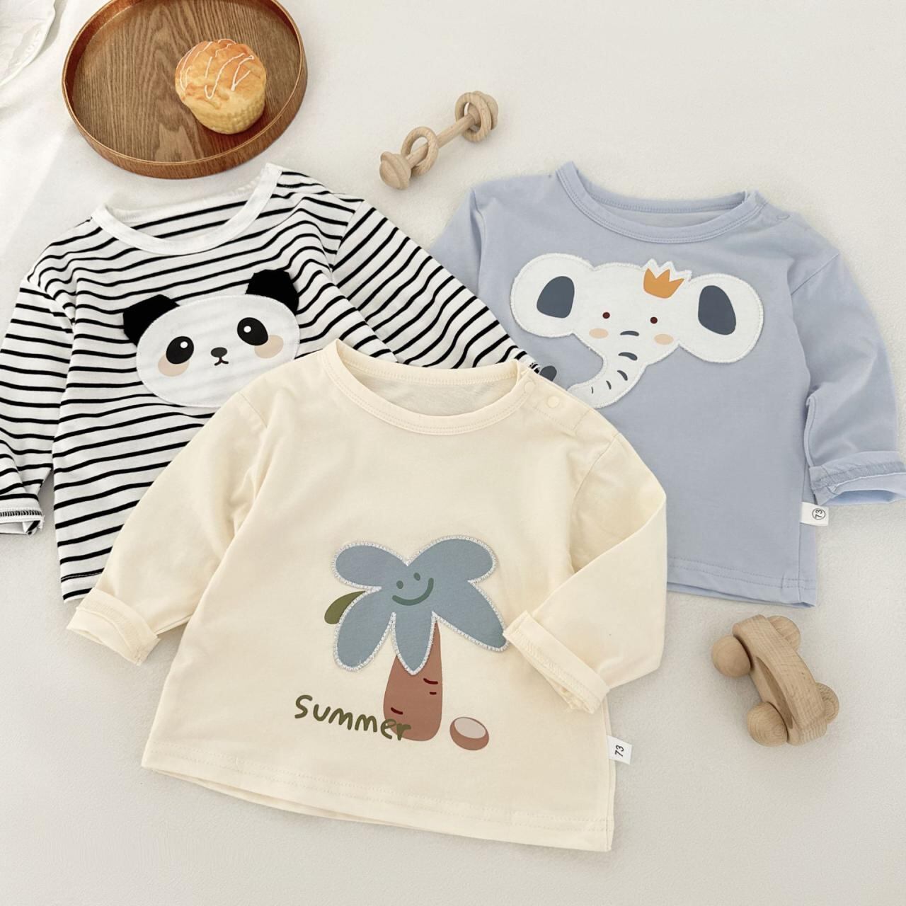 ベビー服 Tシャツ 長袖 赤ちゃん 男女兼用 カットソー 春秋 やわらか 綿100% 吸湿 通気性 かわいい ブルー ストライプ アイボリー 70 80 90 100