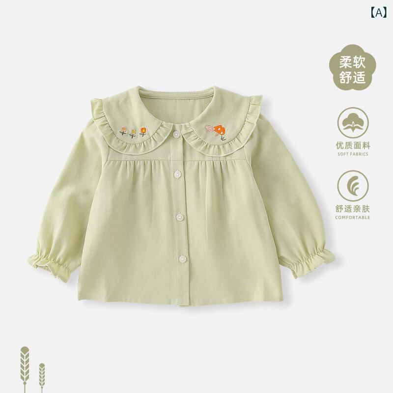シャツ 女児 ベビー 子供服 トップス ブラウス 長袖 コットン 春秋 プリンセススタイル 80 90 100 110 120cm