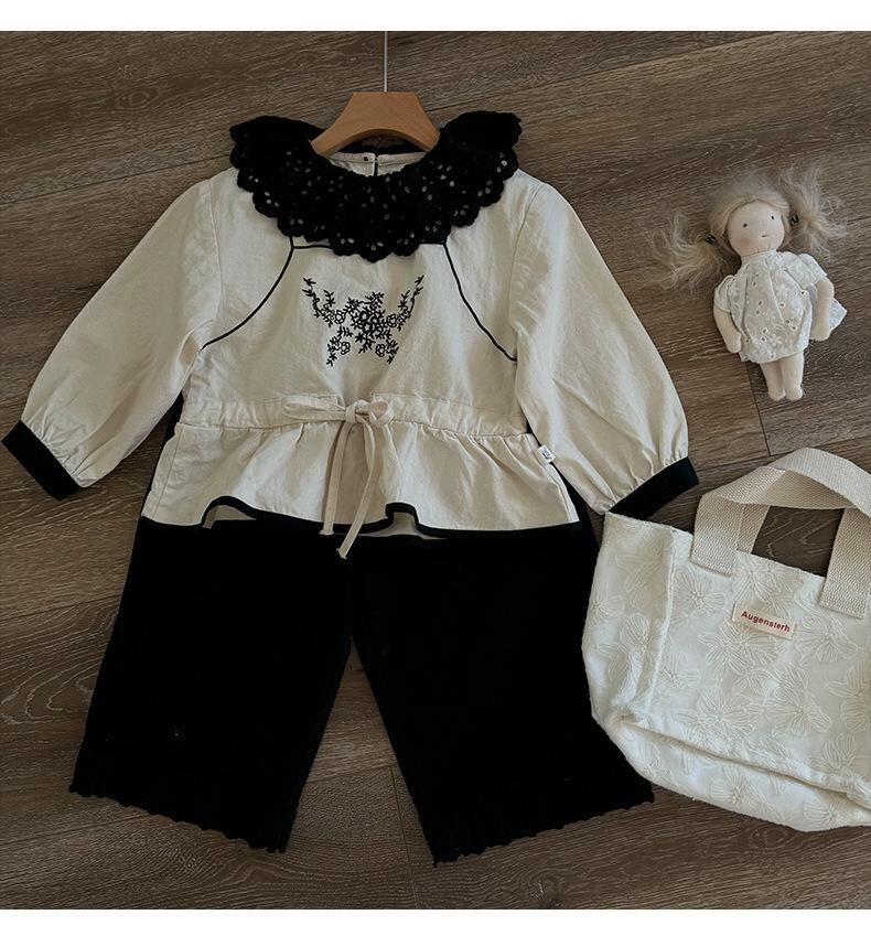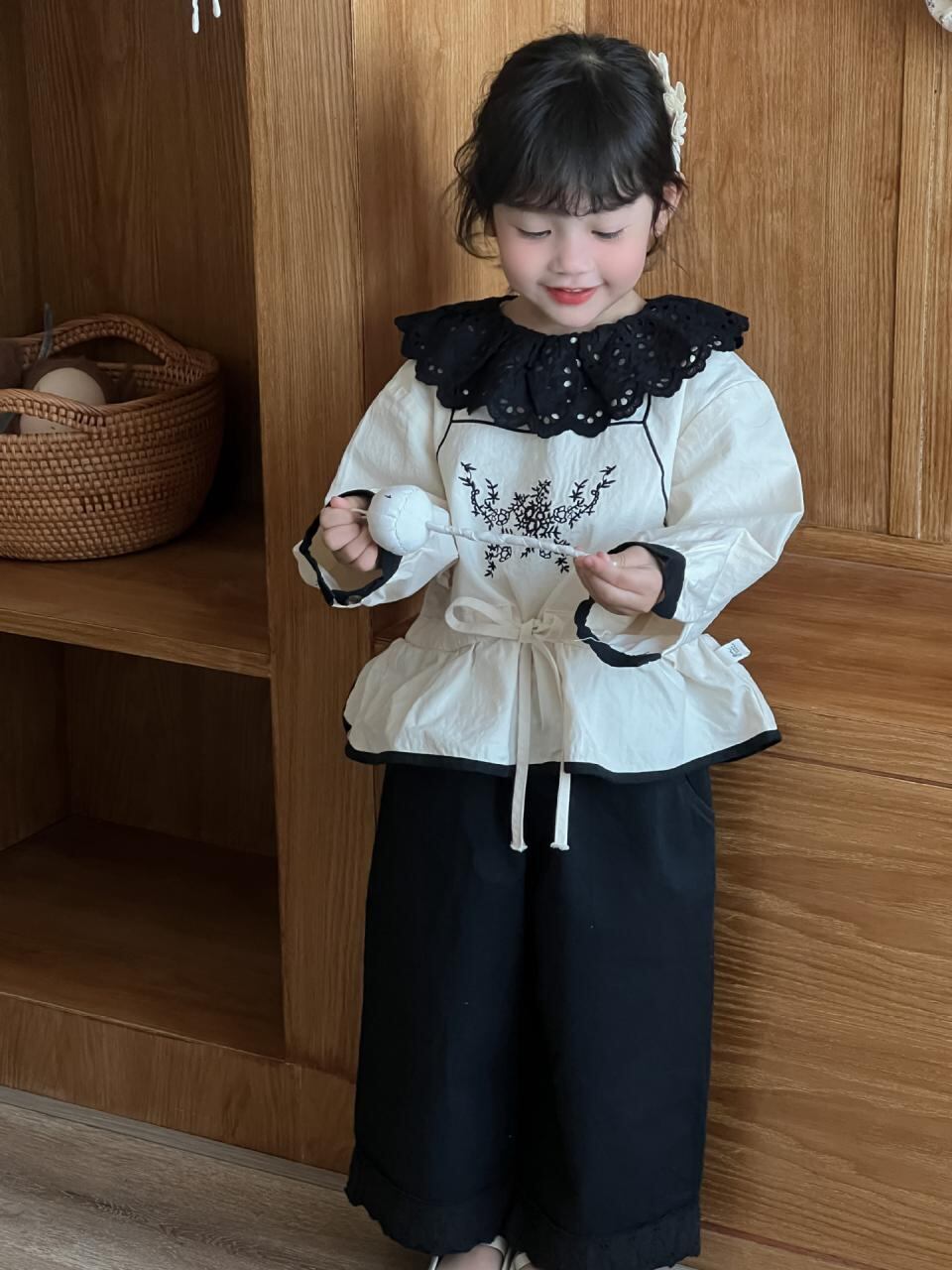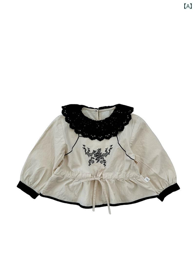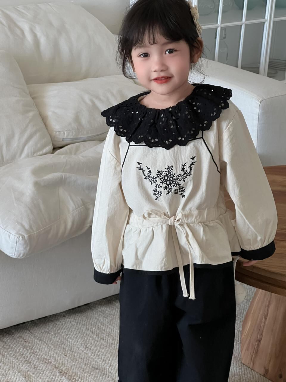 子供服 シャツ 女の子 長袖 花柄 刺繍 フリル襟 ブラウス 韓国風 トップス 春秋 冬物 90 100 110 120 130 140cm