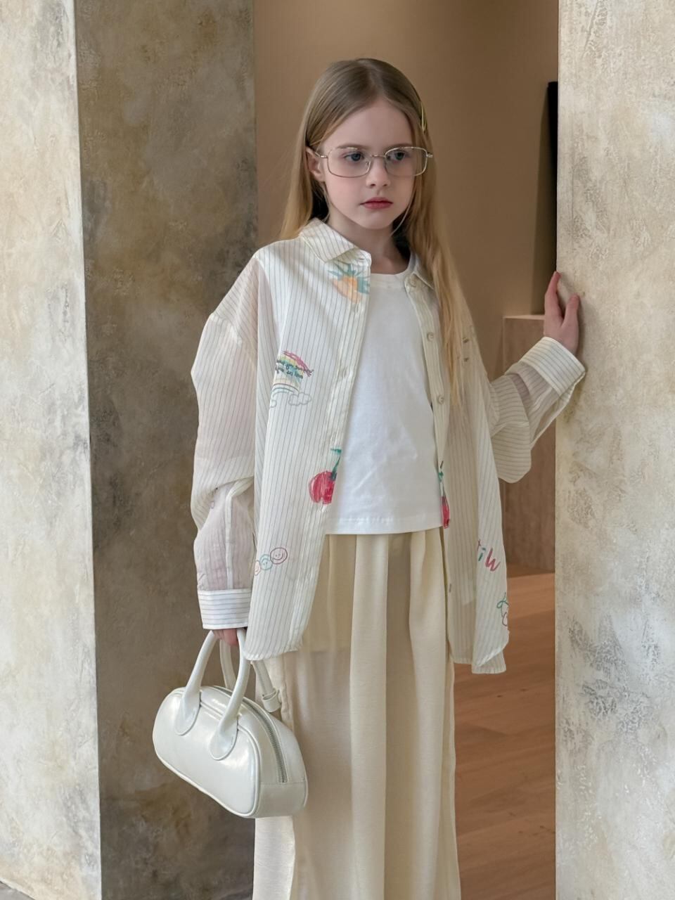 子供服 シャツ 女の子 レトロ かわいい 落書き風 ストライプ トップス 長袖 薄手 春夏 綿100% 通学 普段使い