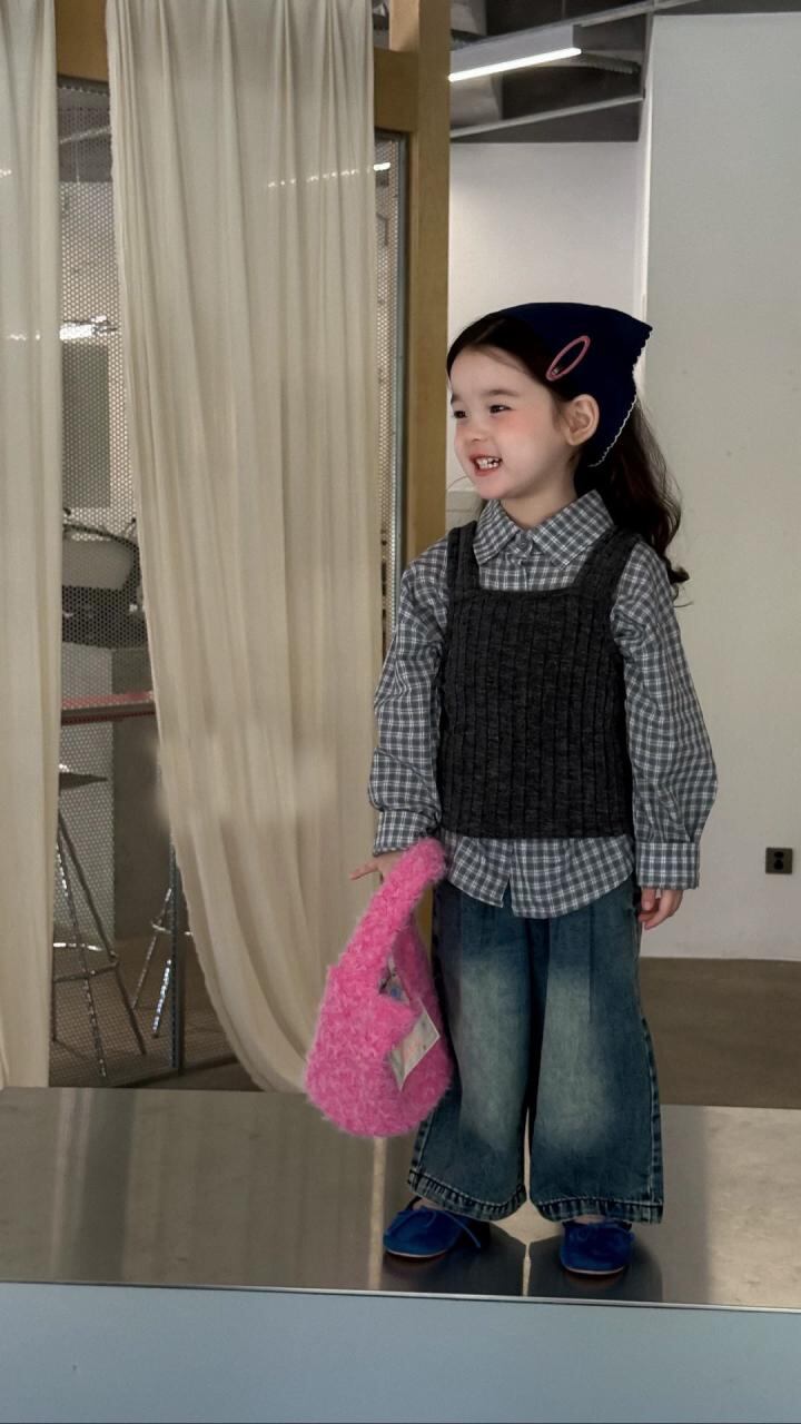 シャツ 女の子 長袖 子供服 ネルシャツ チェック柄 トップス かわいい おしゃれ 秋物 グレー 深灰色 ニットベスト付き 綿