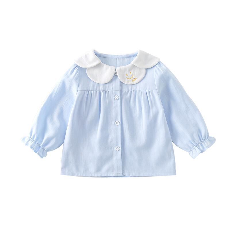 シャツ ガールズ 春秋物 ベビー服 トップス 長袖 コットン 100% かわいい 幼児 子供服 白 青 プリンセススタイル 80 90 100 110 120