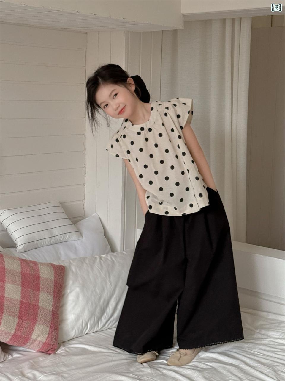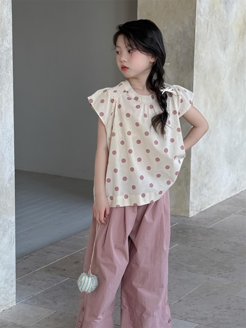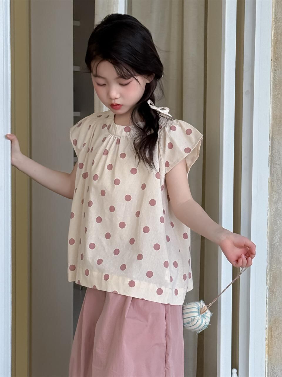 子供服 女の子 トップス ブラウス ノースリーブ 水玉模様 ドット柄 かわいい 綿100% コットン 柔らかい ピンク系 ブラック系 100cm 110cm 120cm 130cm 140cm 150cm 160cm