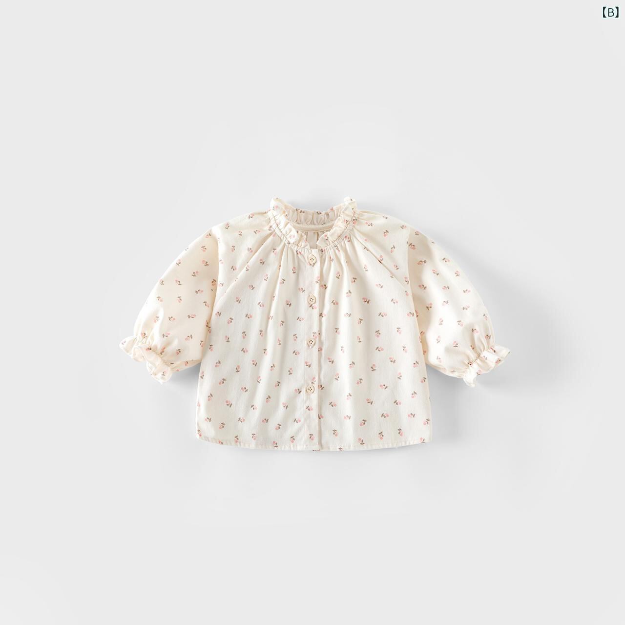シャツ キッズ 長袖 春秋 子供服 おしゃれ かわいい 花柄 襟付き ブラウス トップス コットン100% 73 80 90 100 110 120 ピンク系 アイボリー