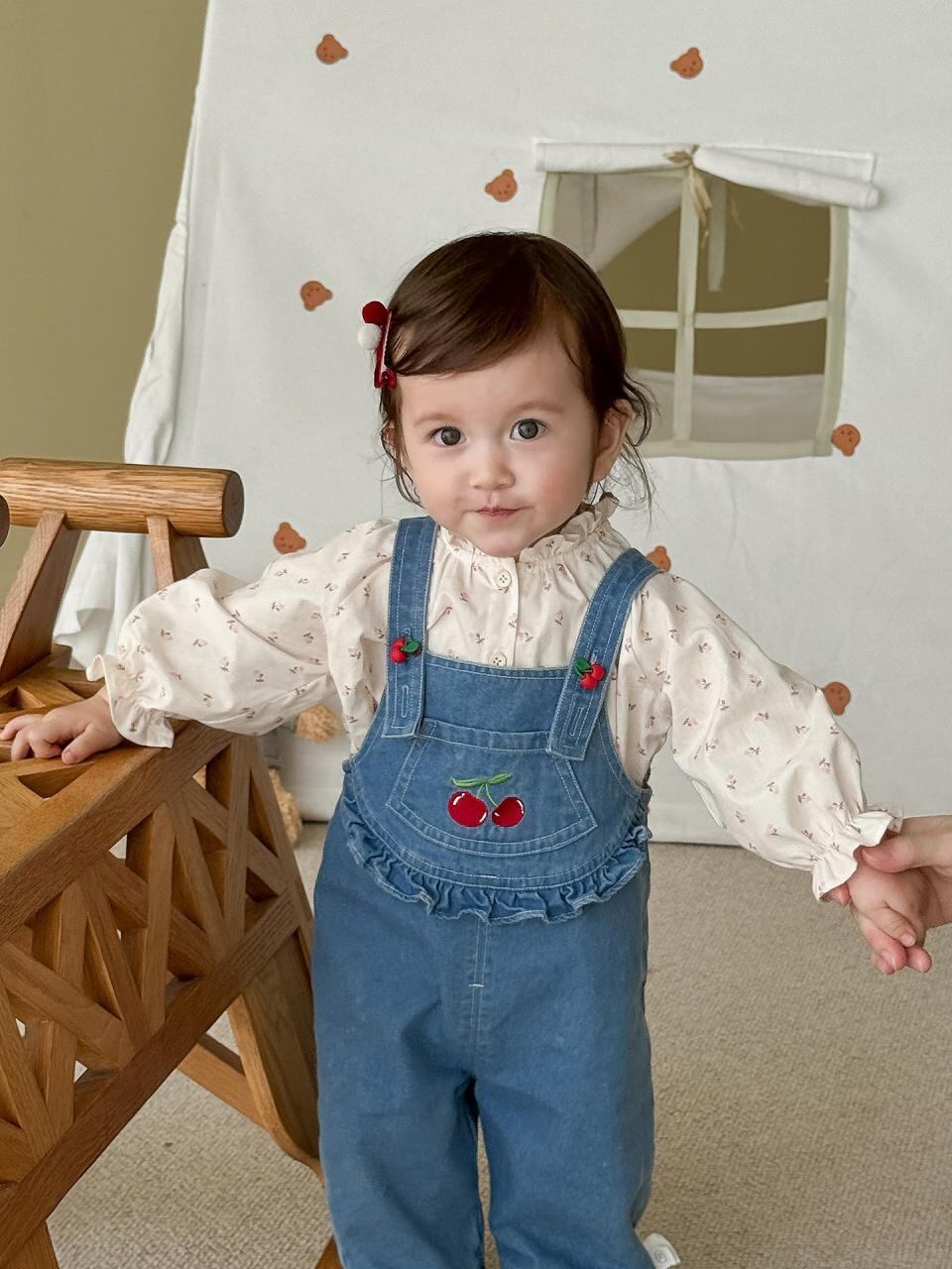 ・カラー: クリーム色のシャツ, ピンクの小花柄シャツ, チェリー柄のデニムサロペット