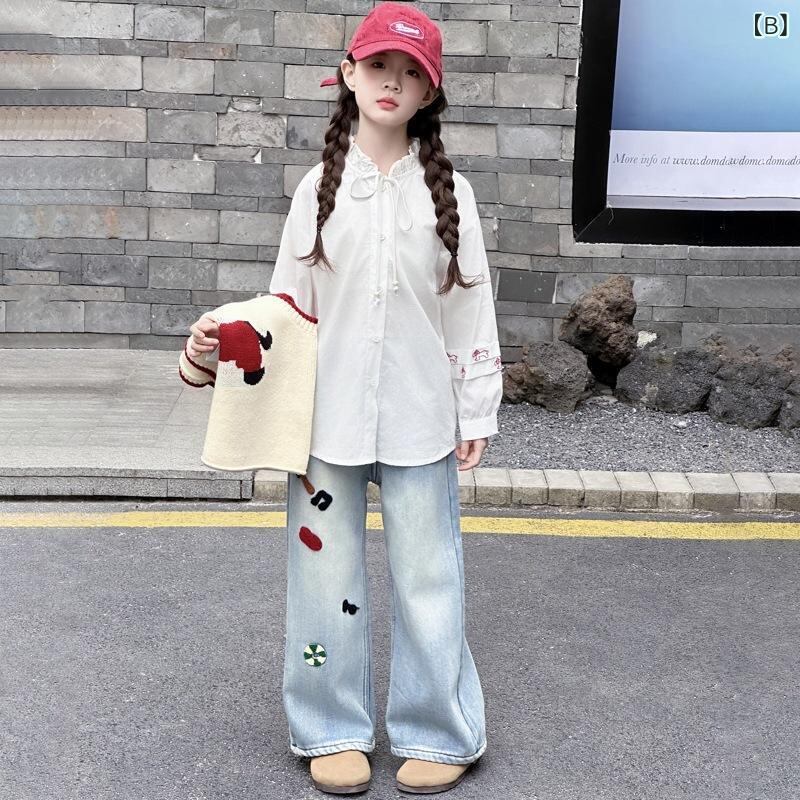 子供服 シャツ 女の子 春秋 長袖 薄手 アウター トップス ブラウス 翻襟 無地 個性 かわいい 普段使い 通学着