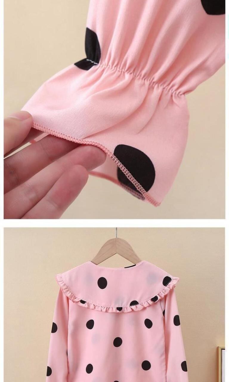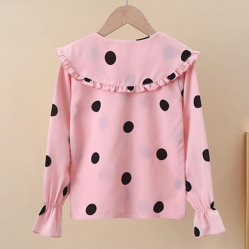 シャツ キッズ 長袖 春秋物 水玉模様 トップス 女の子 子供服 ポロ襟 ブラウス チュニック 普段着 かわいい おしゃれ ホワイト ピンク系 90cm 100cm 110cm 120cm 130cm 140cm