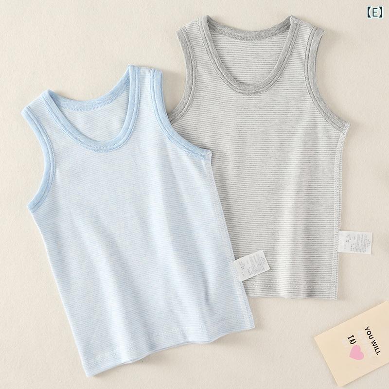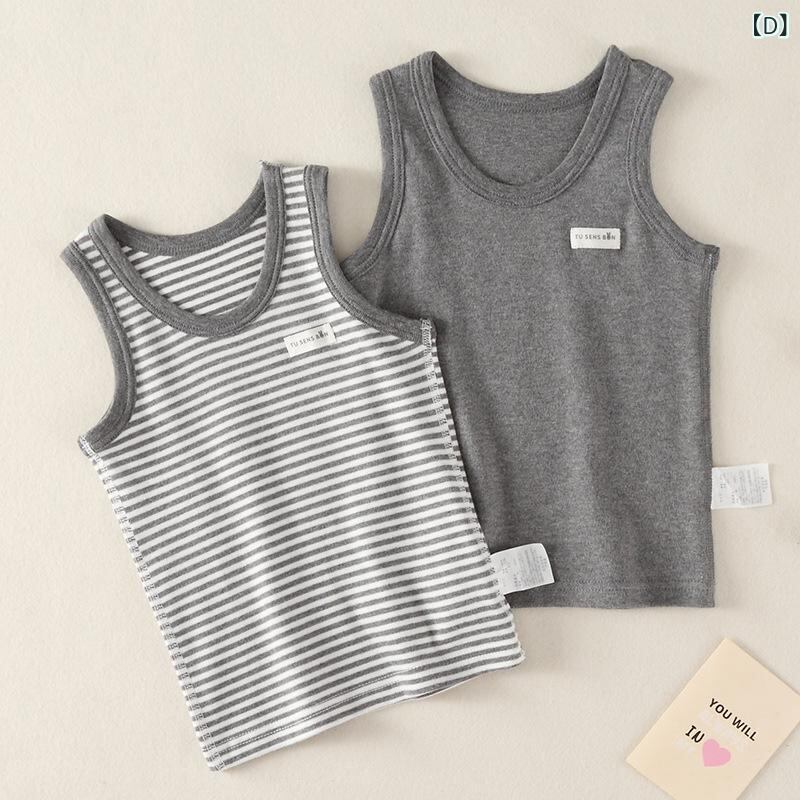 子供服 ベスト 秋冬 キッズ ベビー 無地 ボーダー柄 コットン100% ノースリーブ トップス インナー 部屋着 パジャマ 男の子 女の子 80 90 100 110 120 130 140 150 160