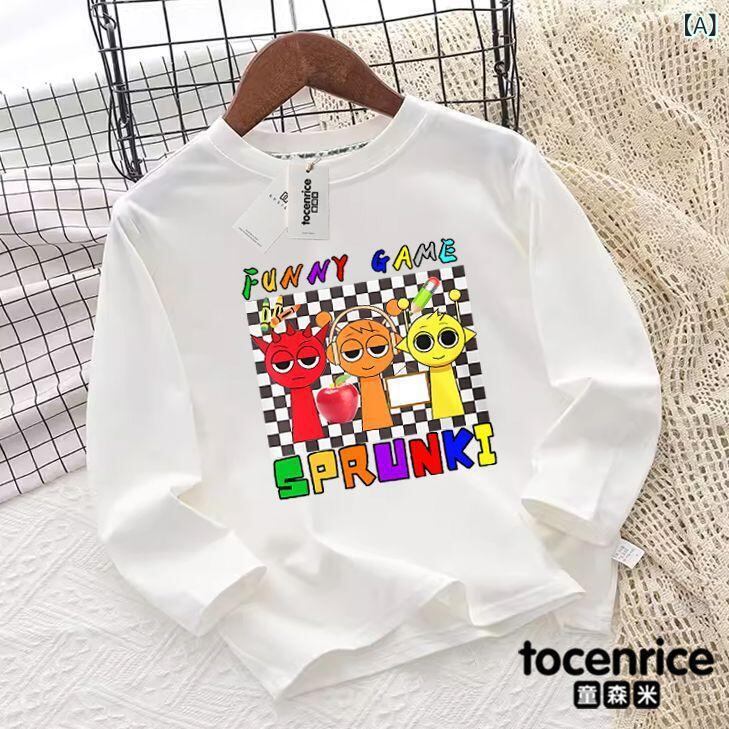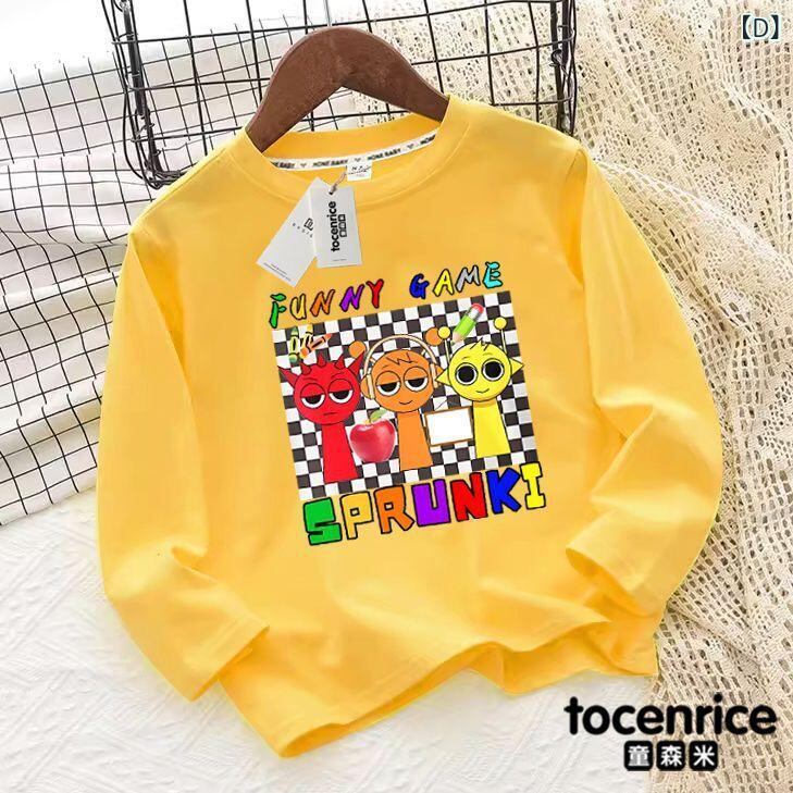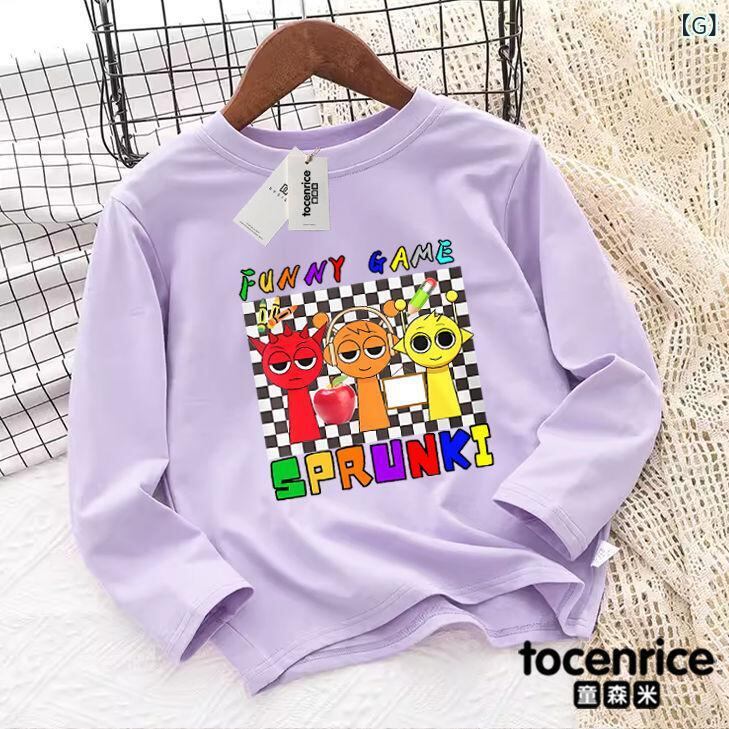子供服 Tシャツ Sprunki 周辺 キャラクター 長袖 男女兼用 ベビー・キッズ トップス カットソー 綿100% 吸湿速乾 柔らかい 白 黒 ピンク 黄色 青 紫 100 110 120 130 140 150 160 春秋