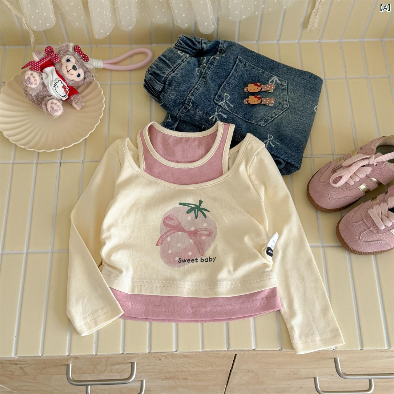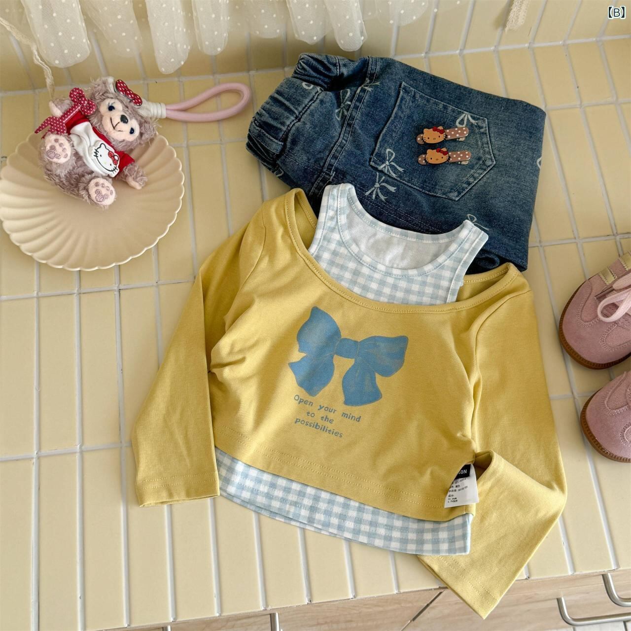 Tシャツ 女の子 春秋 かわいい 小動物 プリント ベージュ ピンク イエロー 90 100 110 120 130 140