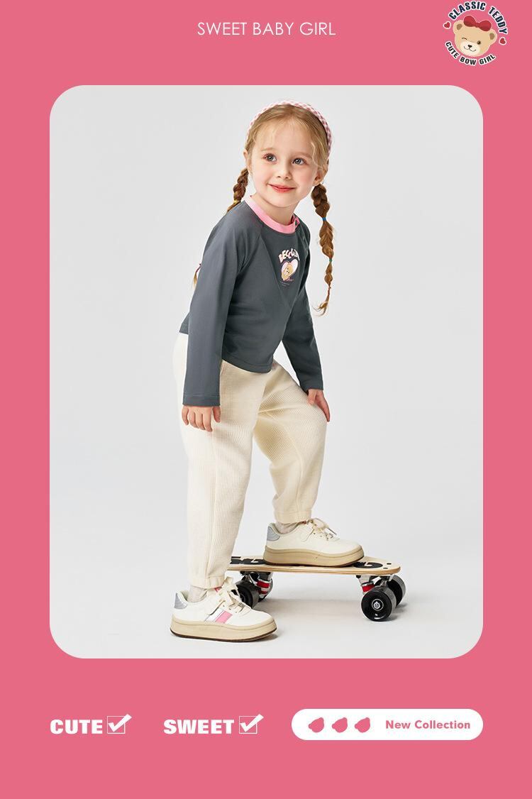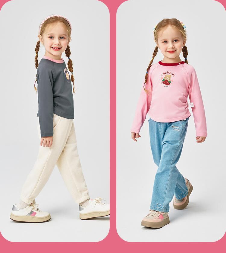 Tシャツ キッズ 春秋 長袖 子供服 トップス カットソー 男女兼用 綿100% かわいい 熊 クマ プリント ピンク系 グレー