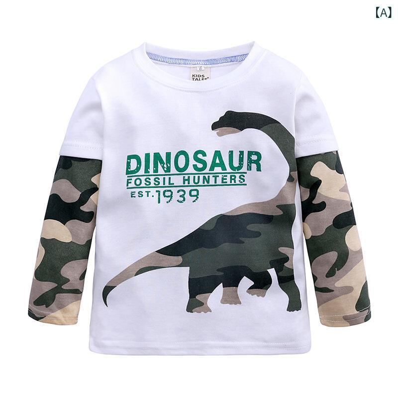 子供服 男の子 長袖Tシャツ 春秋 子供用 トップス カットソー 恐竜柄 コットン カジュアル 普段着 通園
