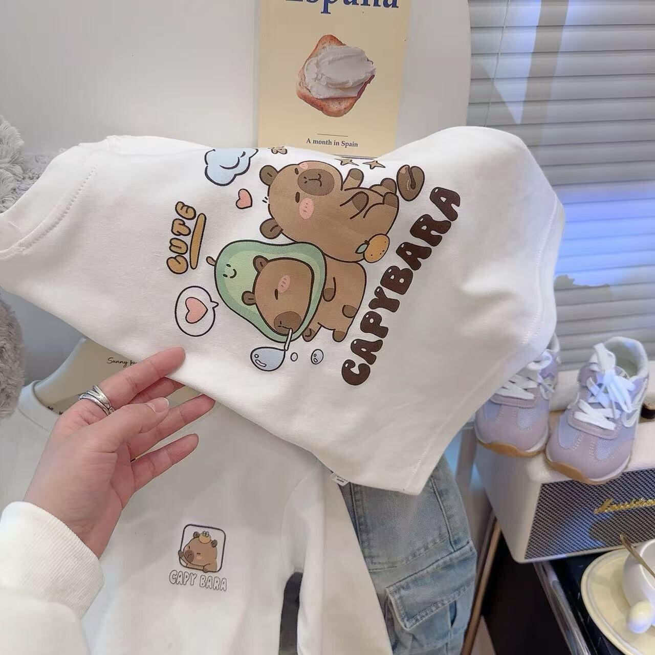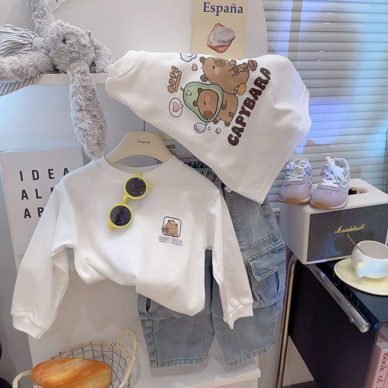 Tシャツ キッズ 子供服 男女兼用 トップス カピバラ 長袖 春秋 綿100% かわいい カジュアル 普段着 中学生 小学生