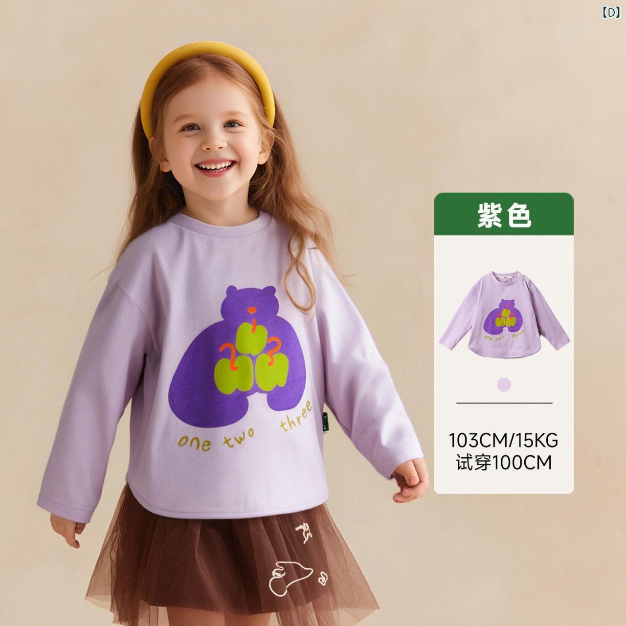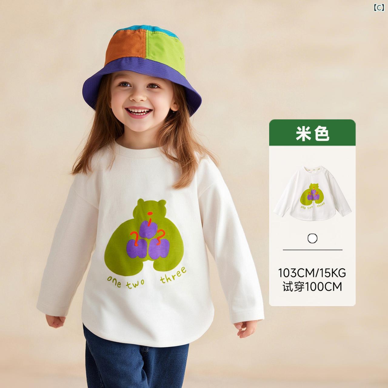 子供服 Tシャツ 長袖 春秋 男女兼用 ベビー 幼児 トップス カットソー 綿100% かわいい カトゥーン キャラクター プリント ピンク 90 100 110 120 130