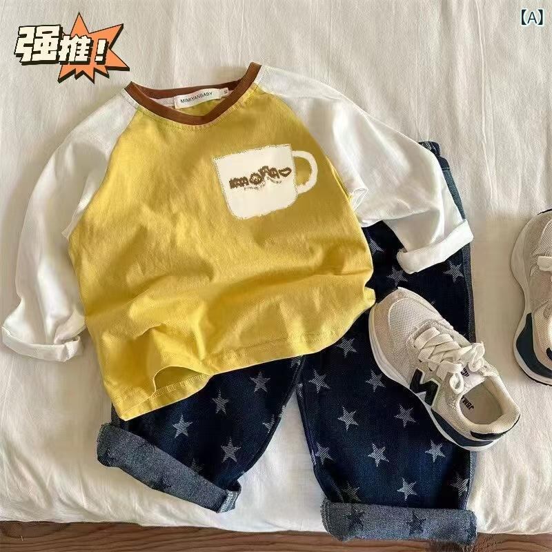 Tシャツ キッズ 男女兼用 子供服 長袖 トップス 春秋 カジュアル プリント 綿 柔らかい 黄色 紺 80cm 90cm 100cm 110cm 120cm 130cm 140cm 150cm