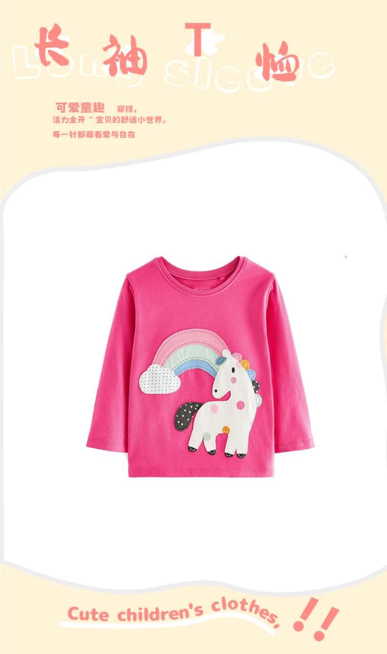 Tシャツ 女の子 子供服 長袖Tシャツ ニット 綿 独角獣 ゆめかわ プリント 春秋 普段使い かわいい ピンク系