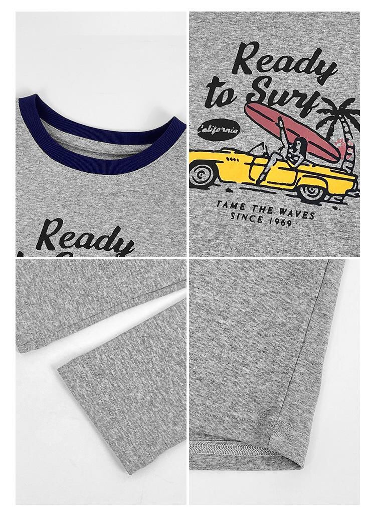 キッズ 女の子 Tシャツ 春物 子供服 長袖 丸首 配色 アルファベット柄 プリント 綿100% グレー