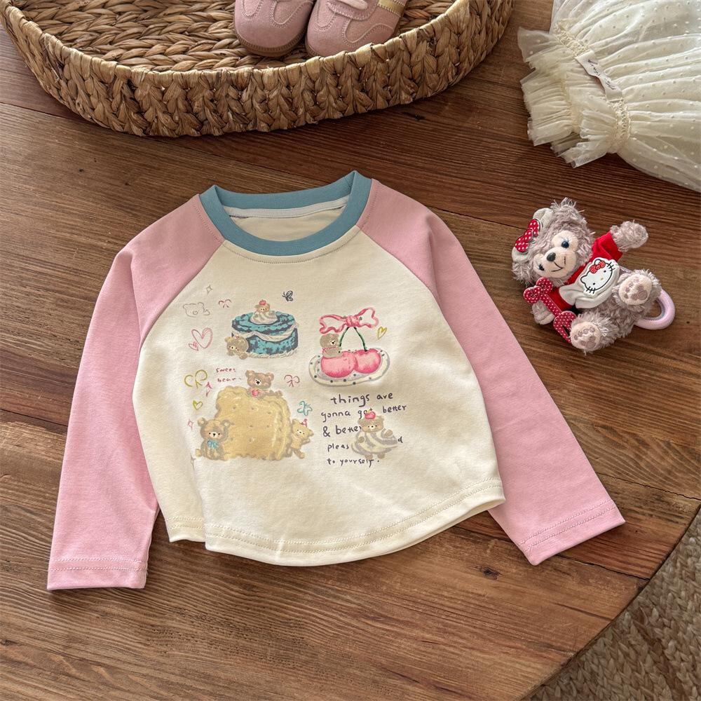 子供用Tシャツ 長袖Tシャツ カットソー 女児 トップス 春秋 かわいい 配色 綿100% 吸湿速乾 普段着 部屋着 イエロー ブラック ピンク レッド