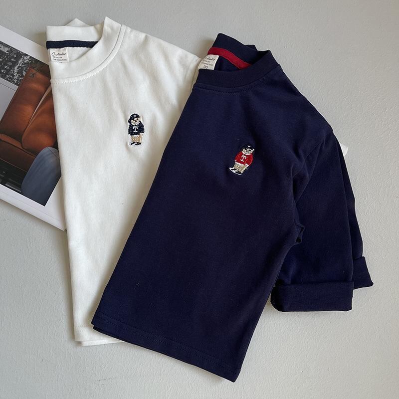 キッズ Tシャツ 長袖 春秋 冬用 男の子 女の子 子供服 トップス カットソー 綿100% 吸湿排汗 かわいい カトゥーン プリント グレー 紺 アイボリー 90 100 110 120 130 140
