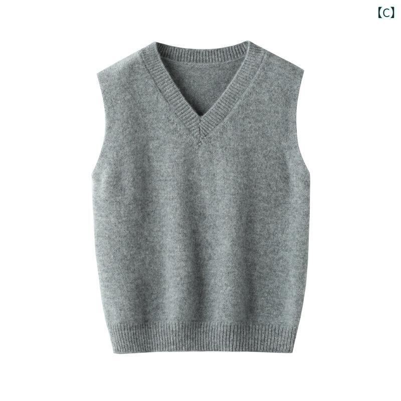 子供用ニットベスト 秋冬 ピュアウール Vネック ノースリーブ 男の子 女の子 ウール セーター ベスト ミドル丈 ビッグサイズ 無地 普段使い 防寒