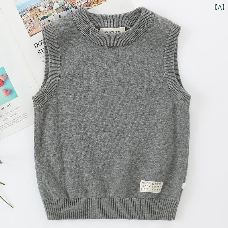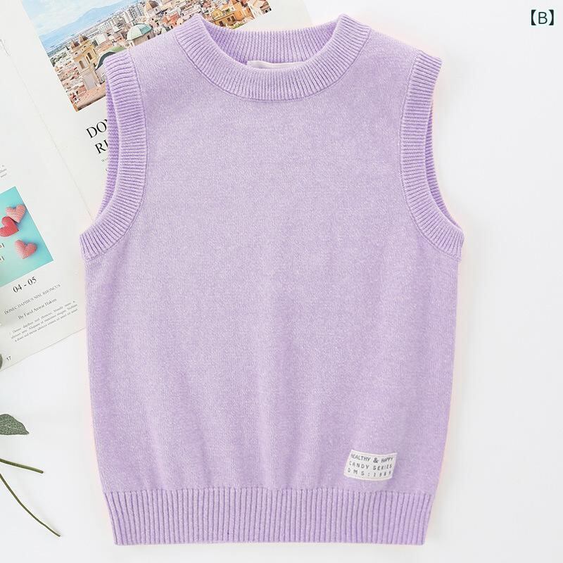 子供服 ニットベスト 春秋 男女兼用 コットン セーター 薄手 チョッキ 幼稚園 保育園 スクールベスト グレー パープル 紺色 ピンク イエロー ブルー オレンジ 110cm 120cm 130cm 140cm 150cm 160cm 170cm