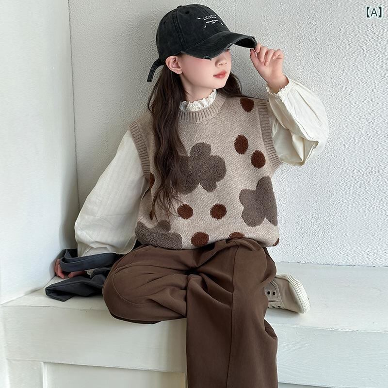 子供服 女の子用 ニットベスト 春秋物 ニット セーター 中高学年向け おしゃれ かわいい 韓国風 子供用トップス ノースリーブ プルオーバー ポリエステル 無地 130cm 140cm 150cm 160cm 170cm