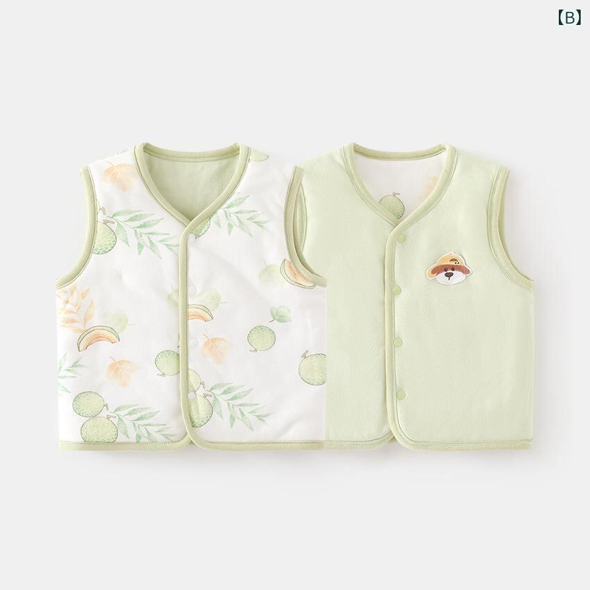 ベビー服 ベスト 新生児 赤ちゃん 両面着用 コットン 100% 中綿入り あったか 秋 冬 かわいい アニマル柄 グレー 象 ハミ瓜 紫色 山竹 栗鼠 柿 オリーブ 73 80 90 100