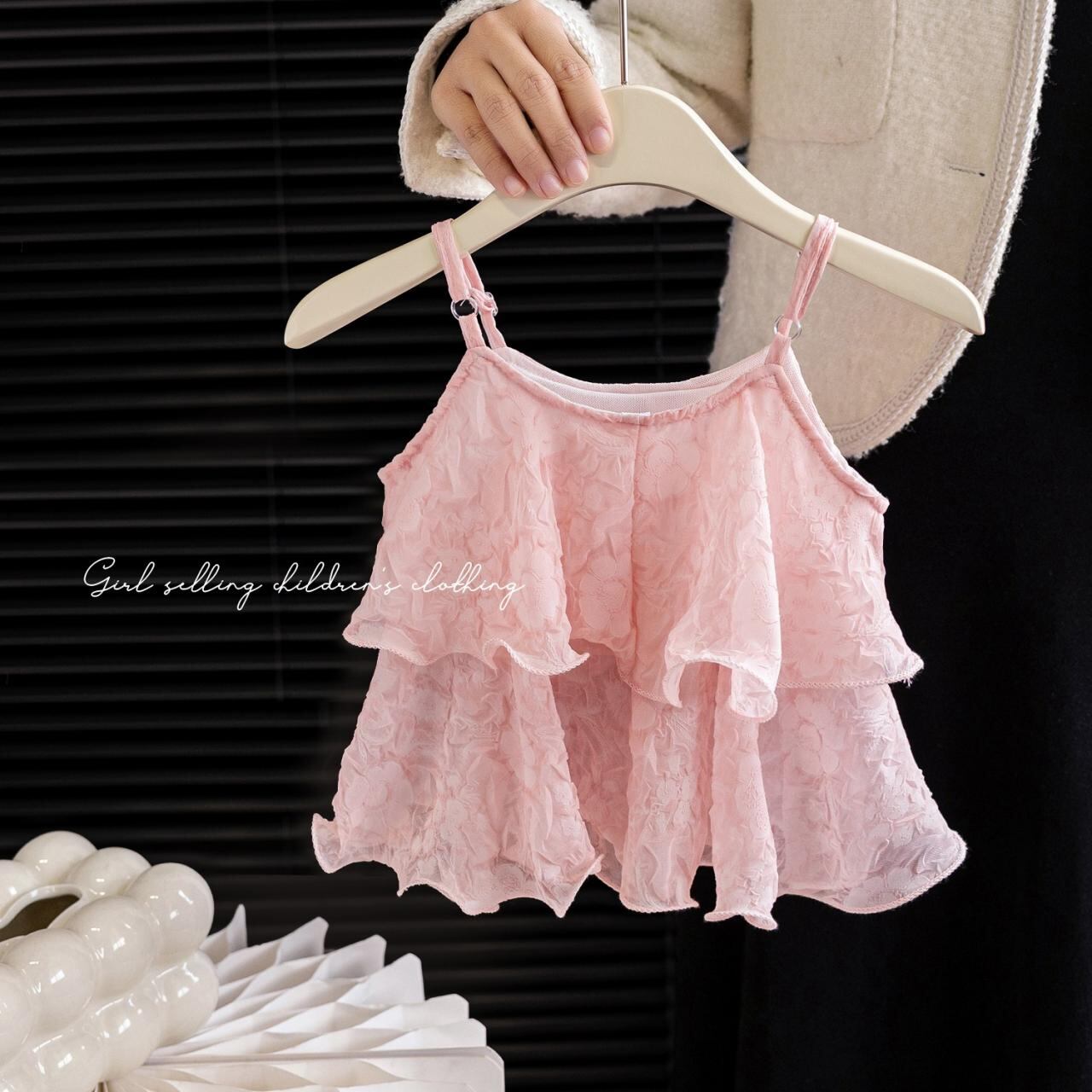子供服 女児用 タンクトップ ベビー服 Vネック コットン混紡 ノースリーブトップス かわいい 普段着 ピンク系 ベージュ 80cm 90cm 100cm 110cm 120cm 130cm