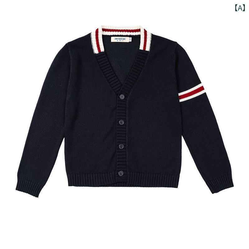 ニット セーター 子供用 厚手 無地 カーディガン キッズ 中大サイズ スクール風 学院風 防寒 チェック Vネック ベスト コットン 100 110 120 130 140 150 160 165 170 175 180 185